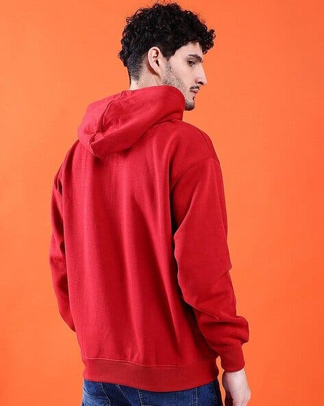 Elevate your streetwear staples, with this timeless and premium cotton-rich hoodie, featuring an adjustable hood, a kangaroo pocket, ribbed hems and stitched detailing, available in red